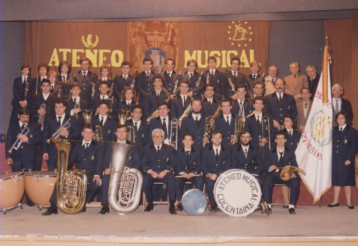 En un importante momento cultural local y con una tradición bandística centenaria, en junio de 1985 se constituye en Cocentaina la Sociedad Ateneo Musical fruto de una escisión de la única banda existente hasta el momento. Con una plantilla de 20 músicos, su primer director fue José Insa Martínez, quien realizó un importante trabajo tanto en la Banda como en la escuela de música. Posteriormente le toman el relevo como directores titulares Josep Robert Sellés y Camps, Juan García Iborra, Agustín Martínez Caballero, Julio Juan García y José Barberá Ferrer, Enrique Alborch Tarrassó, José Vicente Algado Clemente, Iñaki Lecumberri y Camps, David Payán y Gea y el actual director, José Miguel Fay.